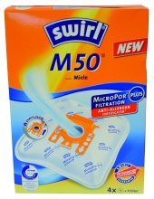4 x Swirl® Vacuum Cleaner Bags M50 AirSpace® technologie guarantees best absorbentness until the filter is completely full because of the two chambers into the Filter with the ® Hepa-filter-technic.Content: 1 originalpack of Swirl Airspace Micropor M 50 (containst: 4x MicroPor vacuum cleaner bags and 1x filter) The models where the vacuum cleaner bag fits you find here: www.swirl.de/staubfilterbeutelsuche_de.html